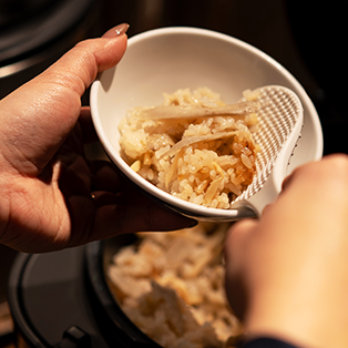 美しいバラ色の赤みとサシが織りなす断面は「肉の芸術品」と例えられる「飛騨牛」。そのおいしさは、火を通した瞬間の芳醇な香りととろける肉質、ゆっくりとにじみ出る脂の甘さにあります。