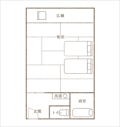 1~3名様 ※3名様でご利用の際はお布団の追加となります。 ※ベッドサイズは970mm×1950mmが2台となります。 |